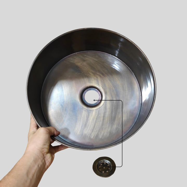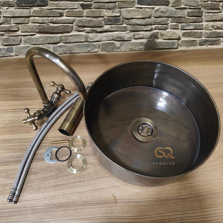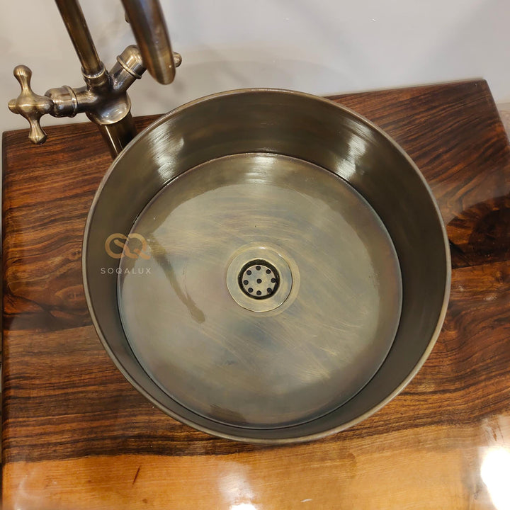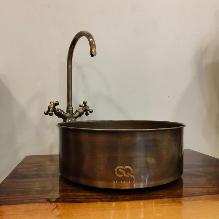 Add timeless charm to your bathroom with our handcrafted, hand-smooth brass sink. Each piece is uniquely made by skilled artisans, finished in a warm oil-rubbed bronze that pairs beautifully with rustic, industrial, or modern interiors.