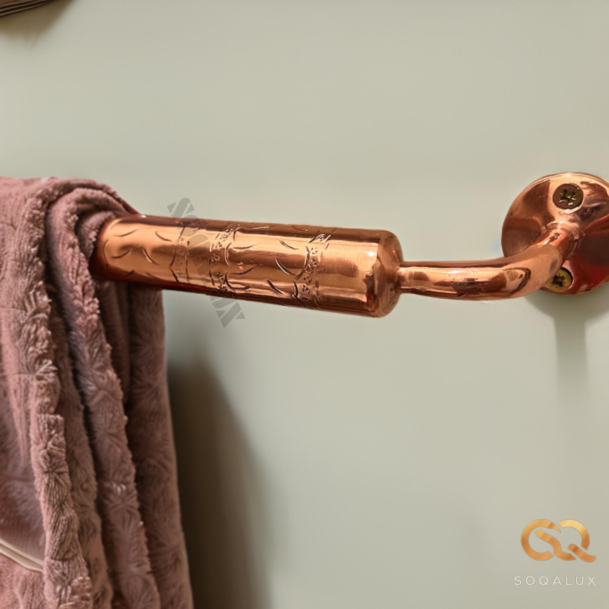 Elevate your bathroom decor with this handcrafted solid copper towel bar, a perfect fusion of style, durability, and functionality. Expertly made by artisans, this wall-mounted towel holder brings timeless charm and a warm, natural patina that enhances any space.