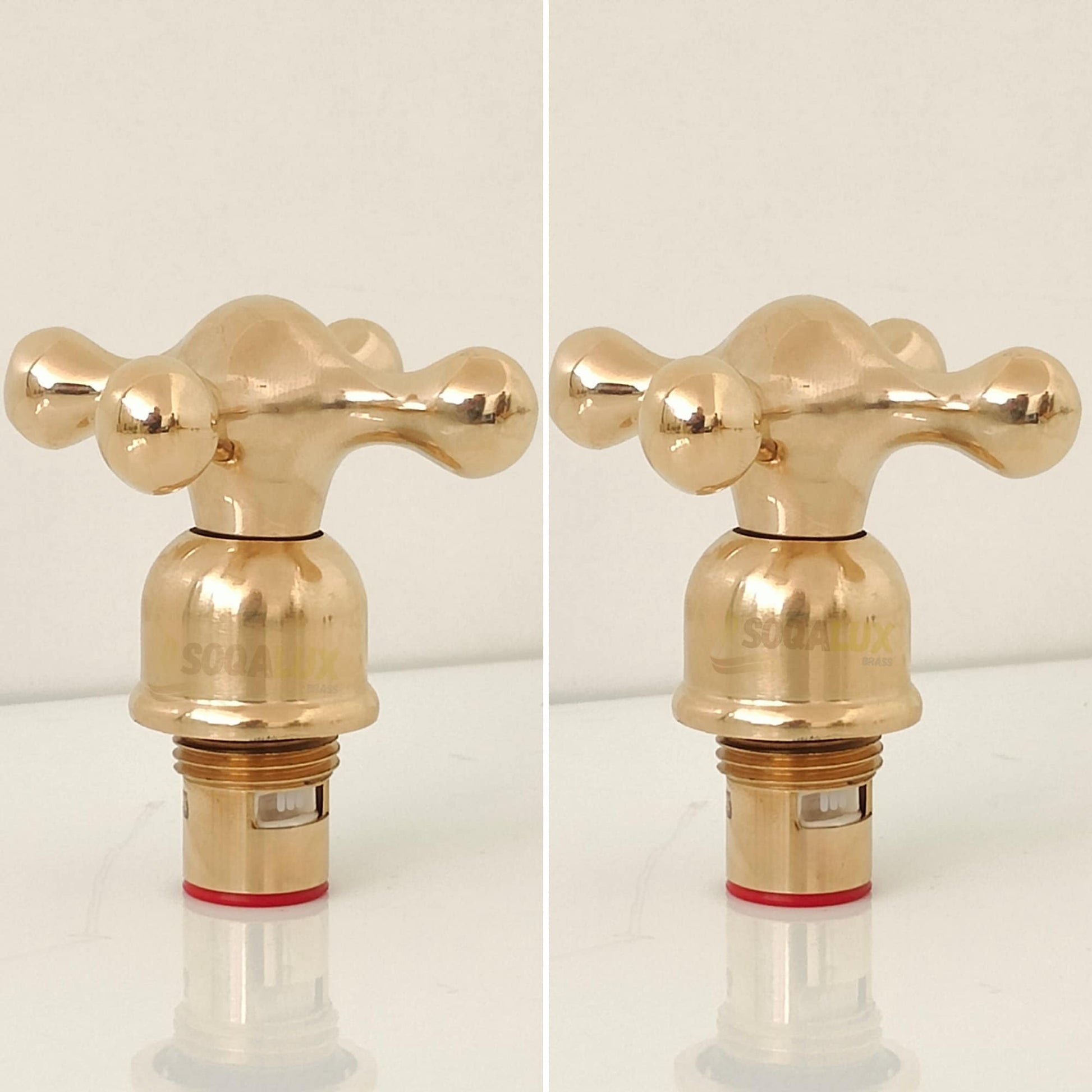 Add vintage character and reliable performance to your kitchen or bathroom with this set of two handmade faucet handles. Crafted from solid brass with crisp cross profiles and precision valve action, these knobs showcase detailed workmanship and sturdy, long-lasting build quality. Ideal for DIY updates or complete remodels, they offer a personalized finishing touch without compromising durability.