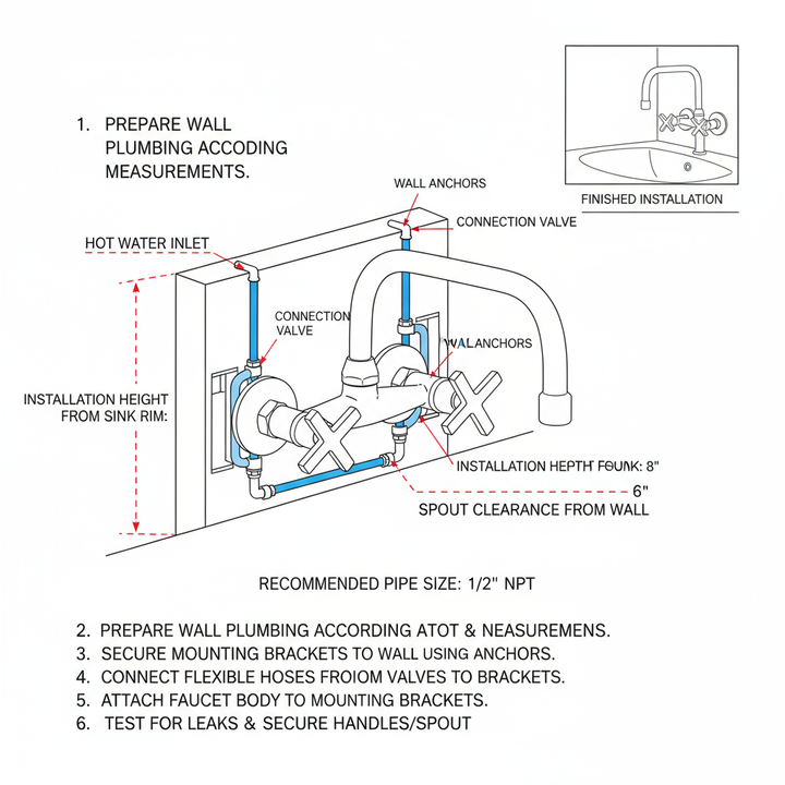 - Design: Wall-mounted spout saves counter space and creates a focal point