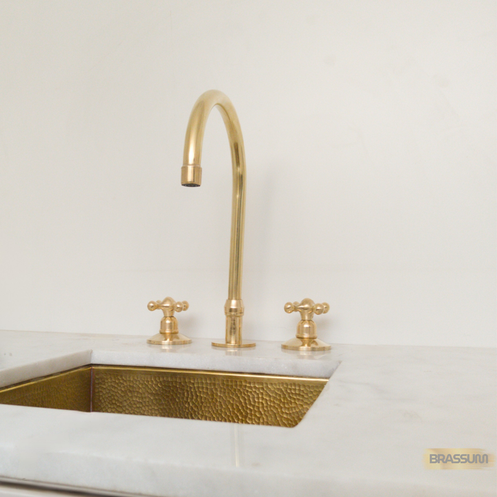 Handcrafted from 100% solid unlacquered brass, this timeless widespread faucet brings durability and character to your bathroom. Its natural patina develops beautifully over time, giving a warm antique look that grows richer with age. Perfect for vanities, powder rooms, or classic bathroom remodels.
